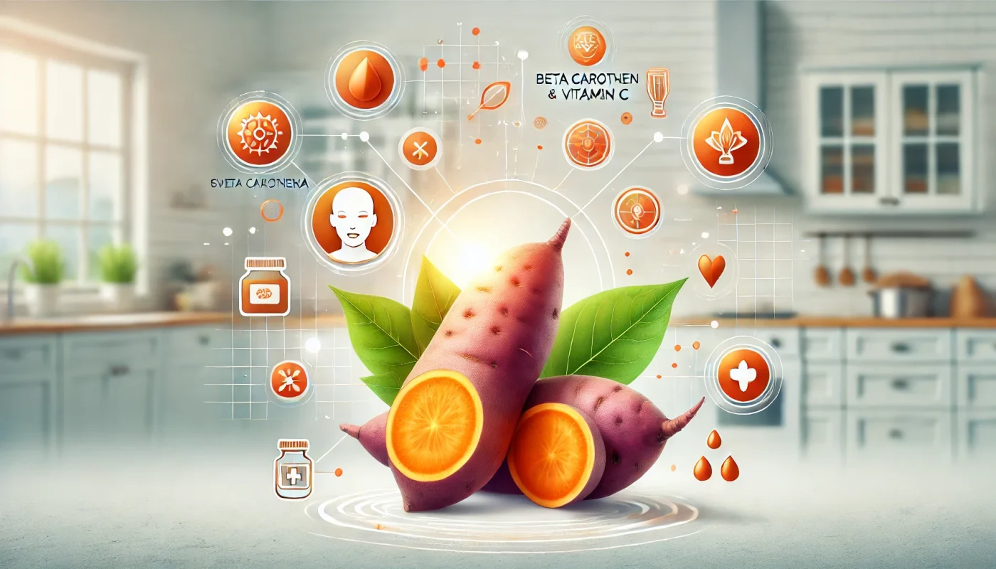 วิตามิน C และสารต้านอนุมูลอิสระในมันเทศช่วยเสริมสร้างระบบภูมิคุ้มกัน ทำให้ร่างกายมีความสามารถในการต้านทานโรคได้ดีขึ้น สารต้านอนุมูลอิสระยังช่วยลดการอักเสบและป้องกันการเกิดโรคเรื้อรังต่างๆ เช่น โรคหัวใจและโรคมะเร็ง นอกจากนี้ วิตามิน C ยังมีบทบาทในการเสริมสร้างคอลลาเจน ซึ่งเป็นโปรตีนที่ช่วยให้ผิวหนังแข็งแรงและยืดหยุ่น