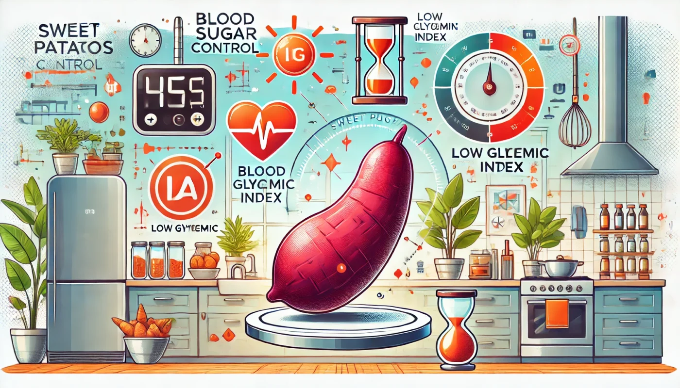 แม้จะมีรสชาติหวาน แต่มันเทศมีดัชนีน้ำตาลต่ำ ซึ่งหมายความว่ามันเทศจะไม่ทำให้ระดับน้ำตาลในเลือดพุ่งสูงอย่างรวดเร็ว การรับประทานมันเทศจะช่วยควบคุมระดับน้ำตาลในเลือดและลดความเสี่ยงในการเกิดโรคเบาหวาน นอกจากนี้ ไฟเบอร์ในมันเทศยังช่วยชะลอการดูดซึมน้ำตาลในเลือด