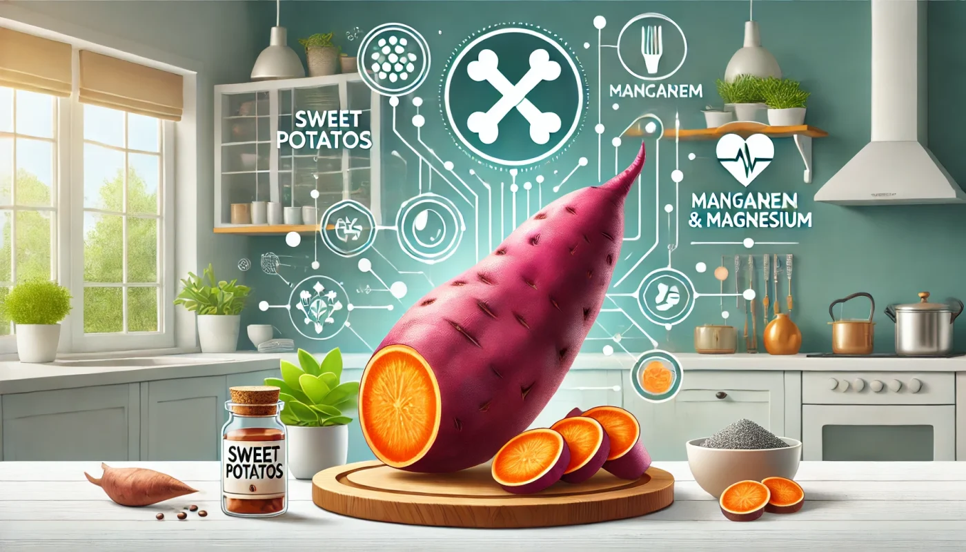 มันเทศมีแร่ธาตุต่างๆ เช่น แมงกานีสและแมกนีเซียม ซึ่งช่วยเสริมสร้างความแข็งแรงของกระดูก การรับประทานมันเทศเป็นประจำจะช่วยลดความเสี่ยงในการเกิดโรคกระดูกพรุนและเสริมสร้างสุขภาพกระดูก